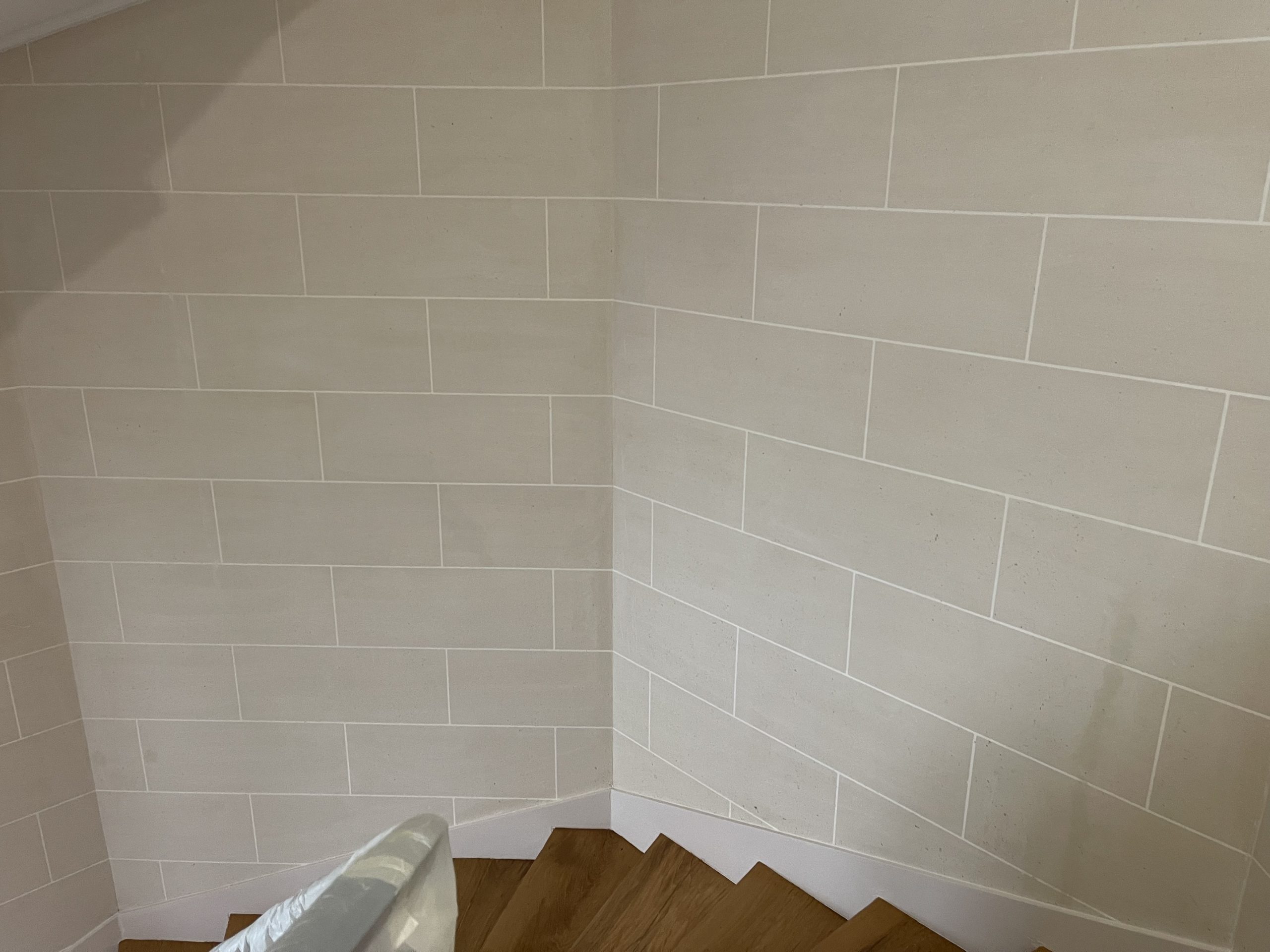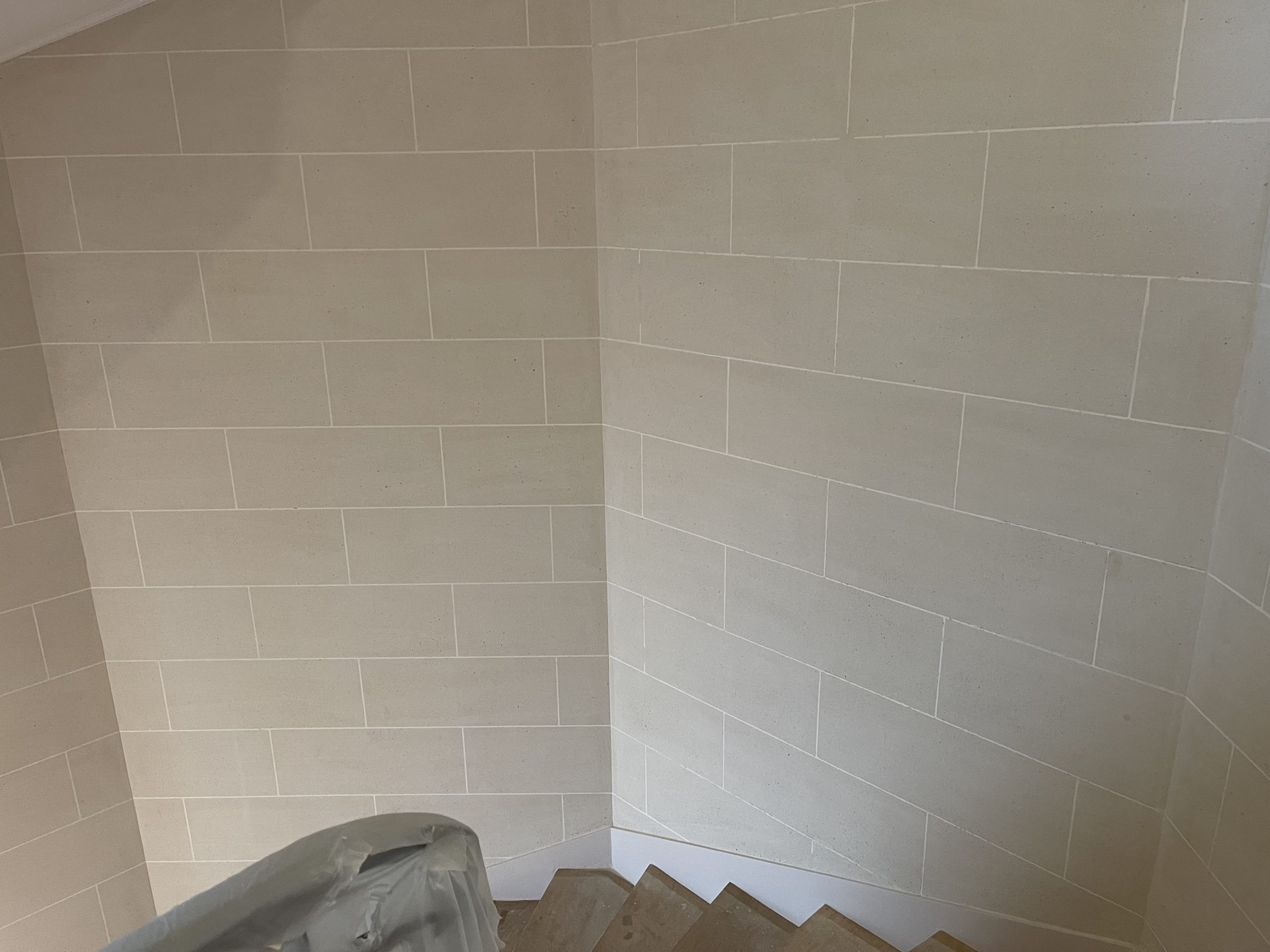 Pose de stuc pierre, gresage reproduction de fils ou de joints blancs